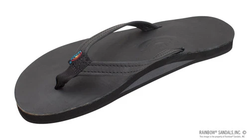 The single layer classic leather sandal is made of top grade nubuck leather; the top sole is embossed with the Rainbow® logo. This model comes with a 1/2″ narrow strap, also classic leather; it is double stitched, and the nylon toe piece is secured with a box X stitch, all using bonded nylon thread.