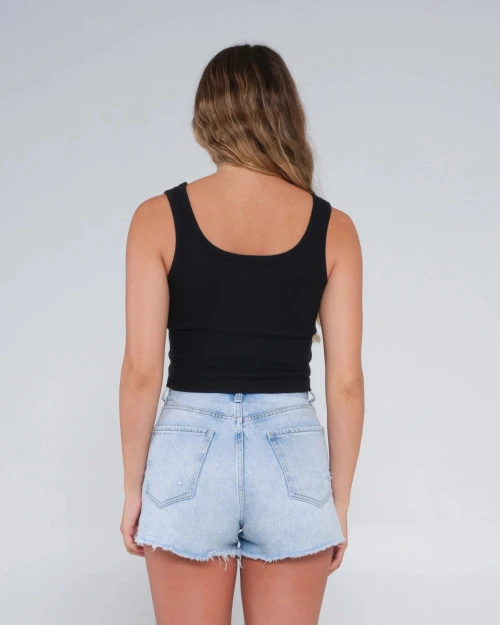 Fitted cropped tank with front and back swoop neck